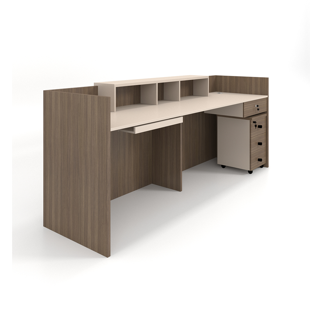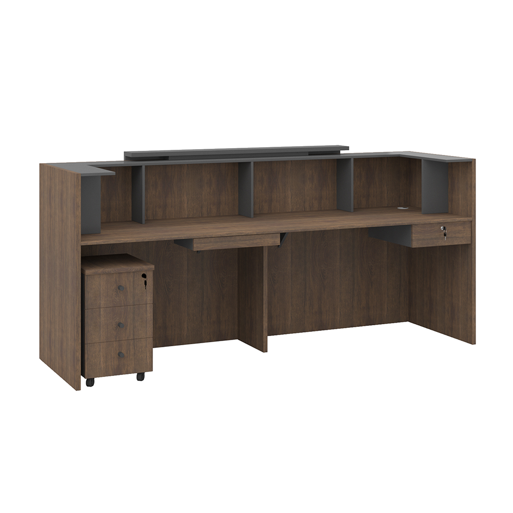 - Modern Color Palette: The deep, warm walnut finish is complemented by charcoal grey dividers and transaction tops, fitting perfectly into both contemporary and traditional office decors.