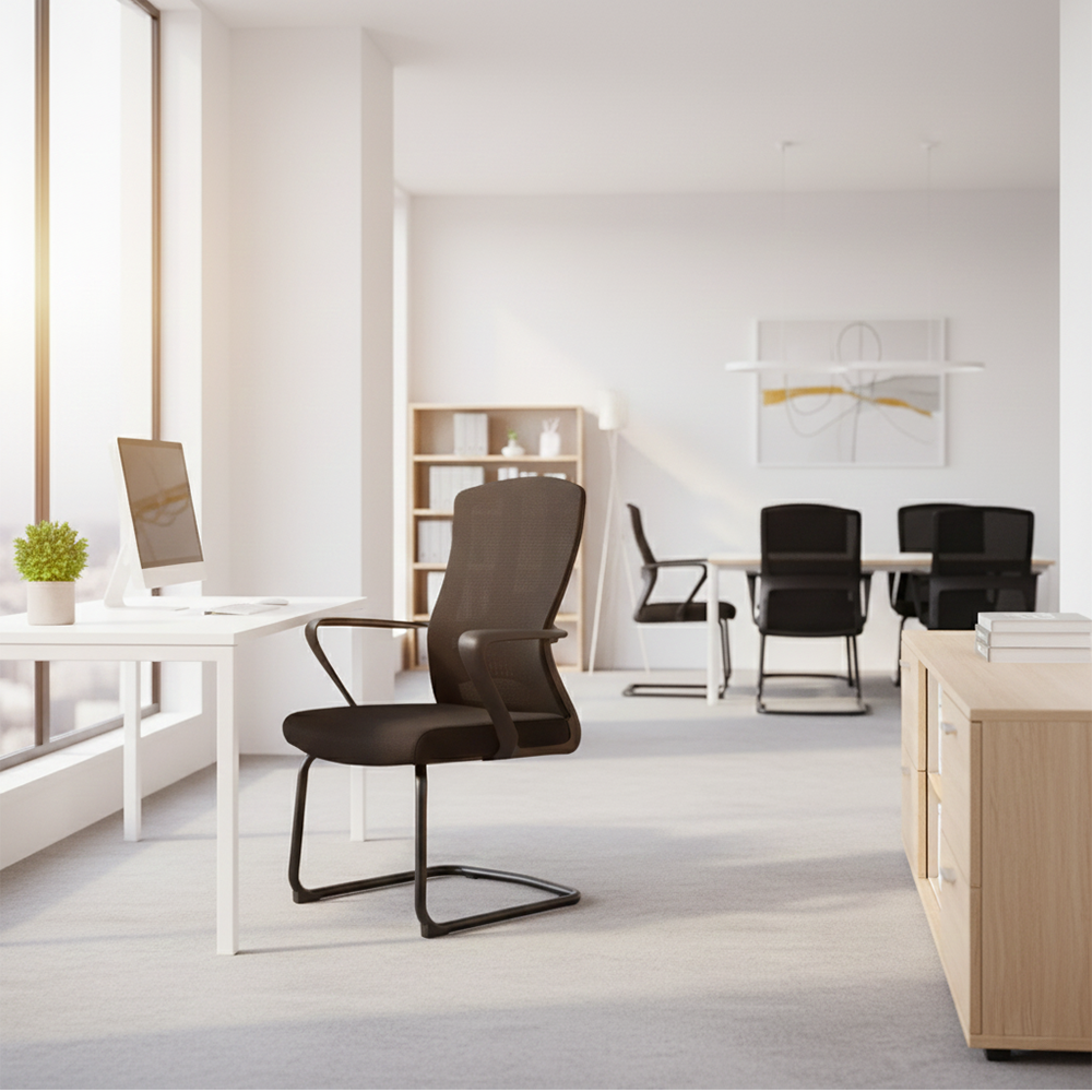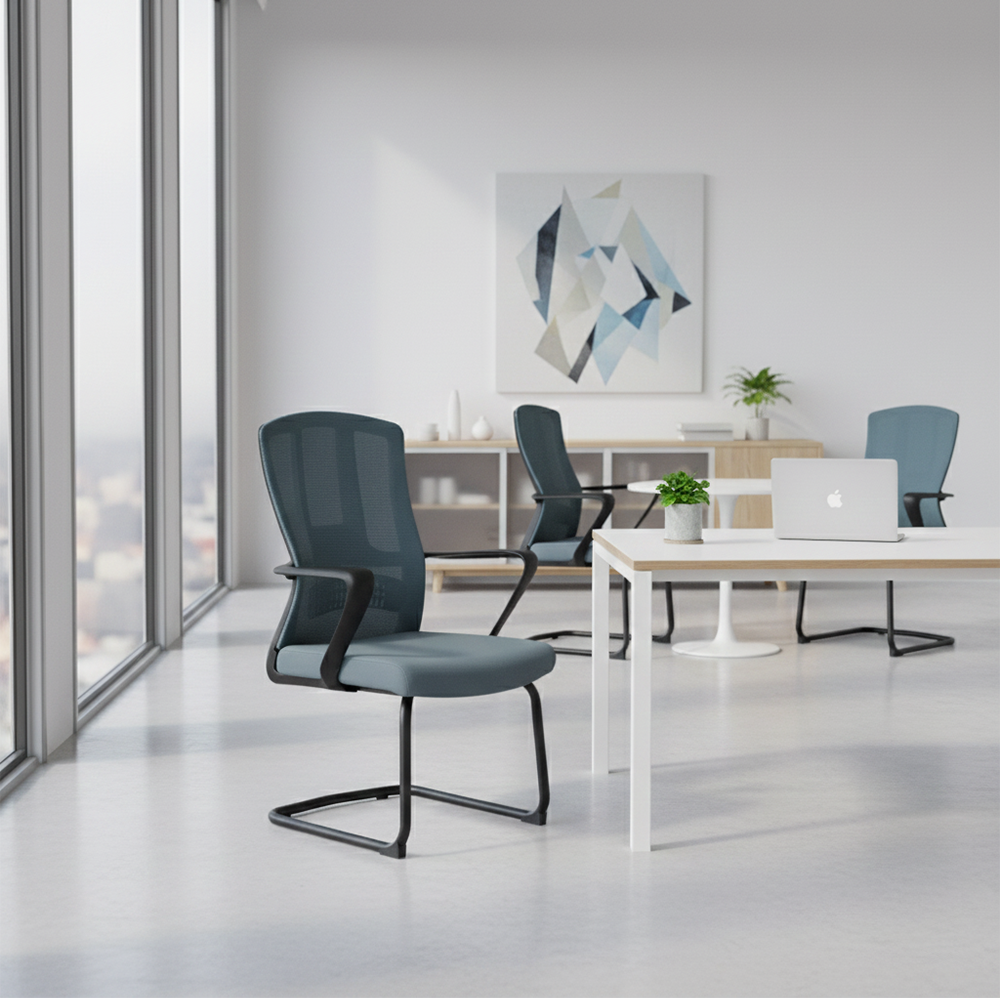 Unlike traditional swivel chairs, this cantilever design offers a subtle “flex” that responds to your body weight, providing a more natural seating experience. The high-tension mesh back ensures constant airflow, keeping you cool during long meetings, while the padded waterfall seat cushion reduces pressure on your legs. Whether you are outfitting a high-end boardroom or a minimalist home study, this chair offers a premium look with industrial-grade durability.