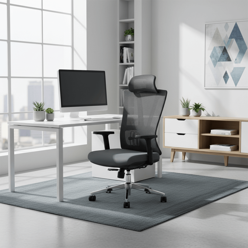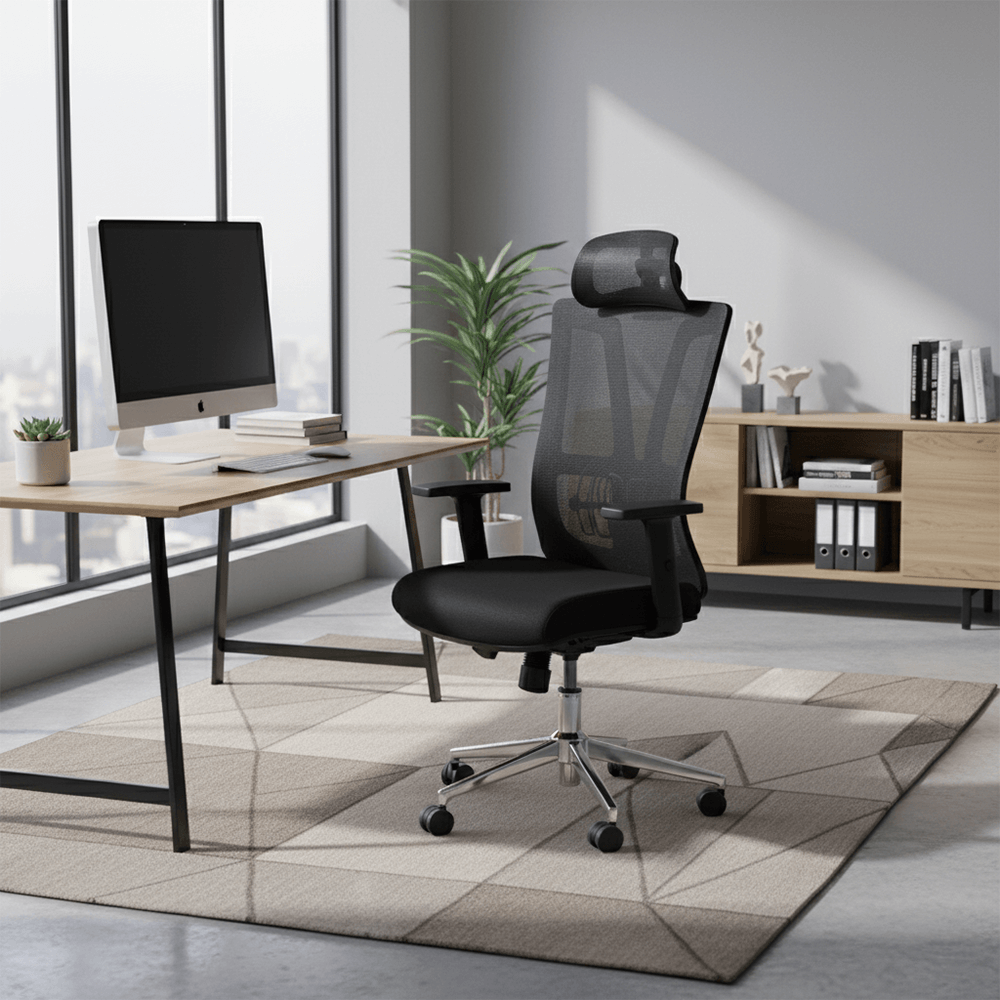 • Breathable “Air-Flow” Mesh: The high-tensile mesh backrest allows for maximum ventilation, preventing heat buildup even during extended summer workdays.