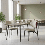 - Structural Steel Exoskeleton: Built with a reinforced carbon-steel frame in a matte charcoal finish, ensuring the chair can withstand the high-traffic demands of a busy restaurant.