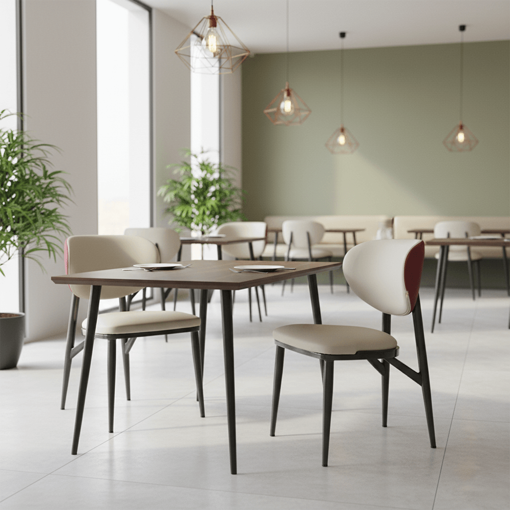 The Crimson Peak is not just a seat; it is a design statement. Defined by its striking dual-tone upholstery and a structural “Y-frame” exoskeleton, this chair is designed for upscale bistros, modern cafes, and high-concept dining rooms. The cream-toned seat provides a neutral foundation, while the signature crimson accent on the backrest provides a “peak” of visual energy that draws the eye across any room.