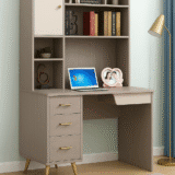 The Hyacinth Study Desk is the pinnacle of the “work-from-home” evolution. Designed for those who need a heavy-duty organizational system without sacrificing high-end interior aesthetics, this desk offers an expansive vertical hutch and a sophisticated tri-drawer pedestal finished with luxurious gold accents.