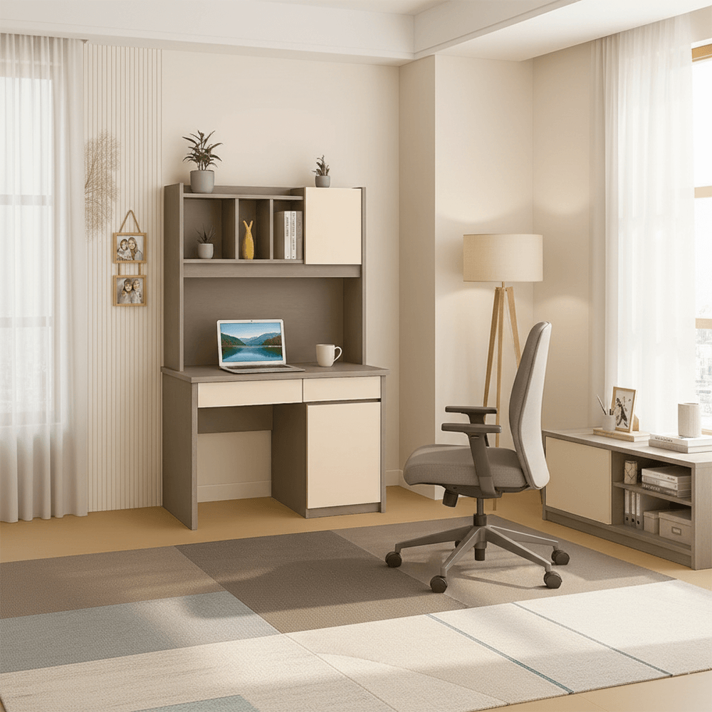 - Smart Storage Solutions: Equipped with two slim-profile drawers for stationery and a spacious lower side-cabinet for larger items or CPU storage.