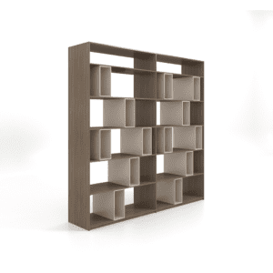 Its blend of open shelving and hidden cabinetry offers a sophisticated, clutter-free environment perfect for deep focus and modern living.