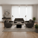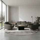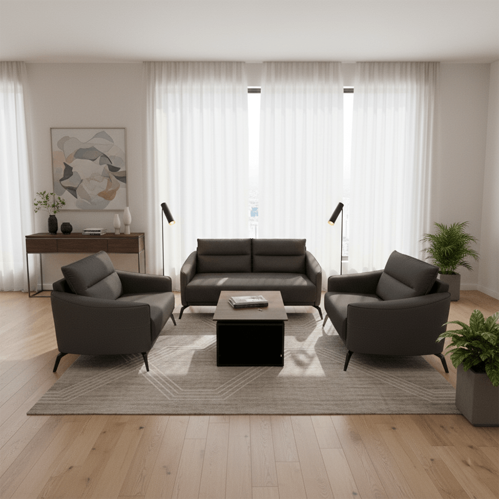 • Complete Ensemble: Includes a matching two-seater sofa, two deep-seated armchairs, and a coordinated minimalist coffee table for a cohesive, professional look.