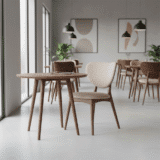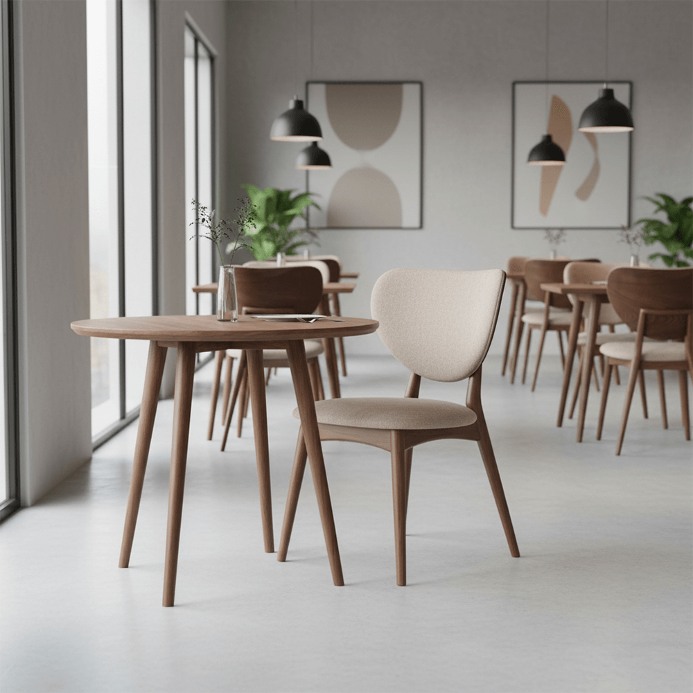 - Mid-Century Tapered Legs: The splayed, solid wood legs provide a sturdy architectural foundation while creating an airy, spacious feel under the table.