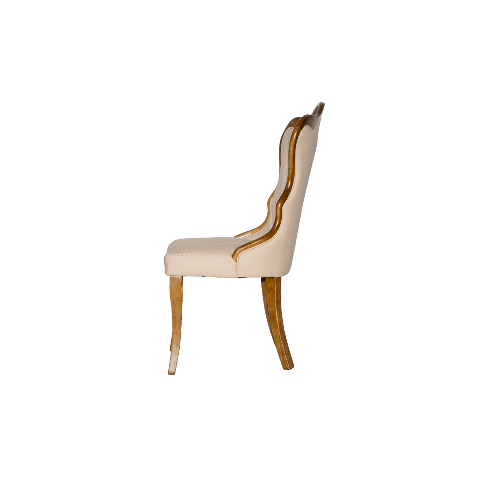 Wrapped in premium, pebble-grained cream upholstery and supported by masterfully tapered legs, the Sahara brings a sense of “organic luxury” to upscale restaurants, boutique hotels, or sophisticated home dining rooms. Its high-back design provides a regal presence while the ergonomic curves ensure guests remain comfortable through every course.