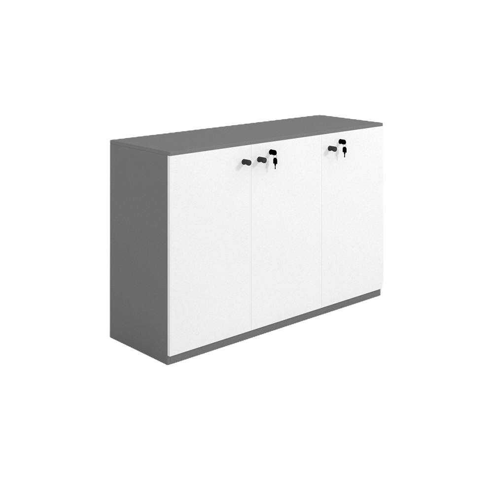 • Flush-Front Design: The sleek, handle-free aesthetic (using keys as primary pulls) ensures a seamless look that fits perfectly against walls or as a room divider.