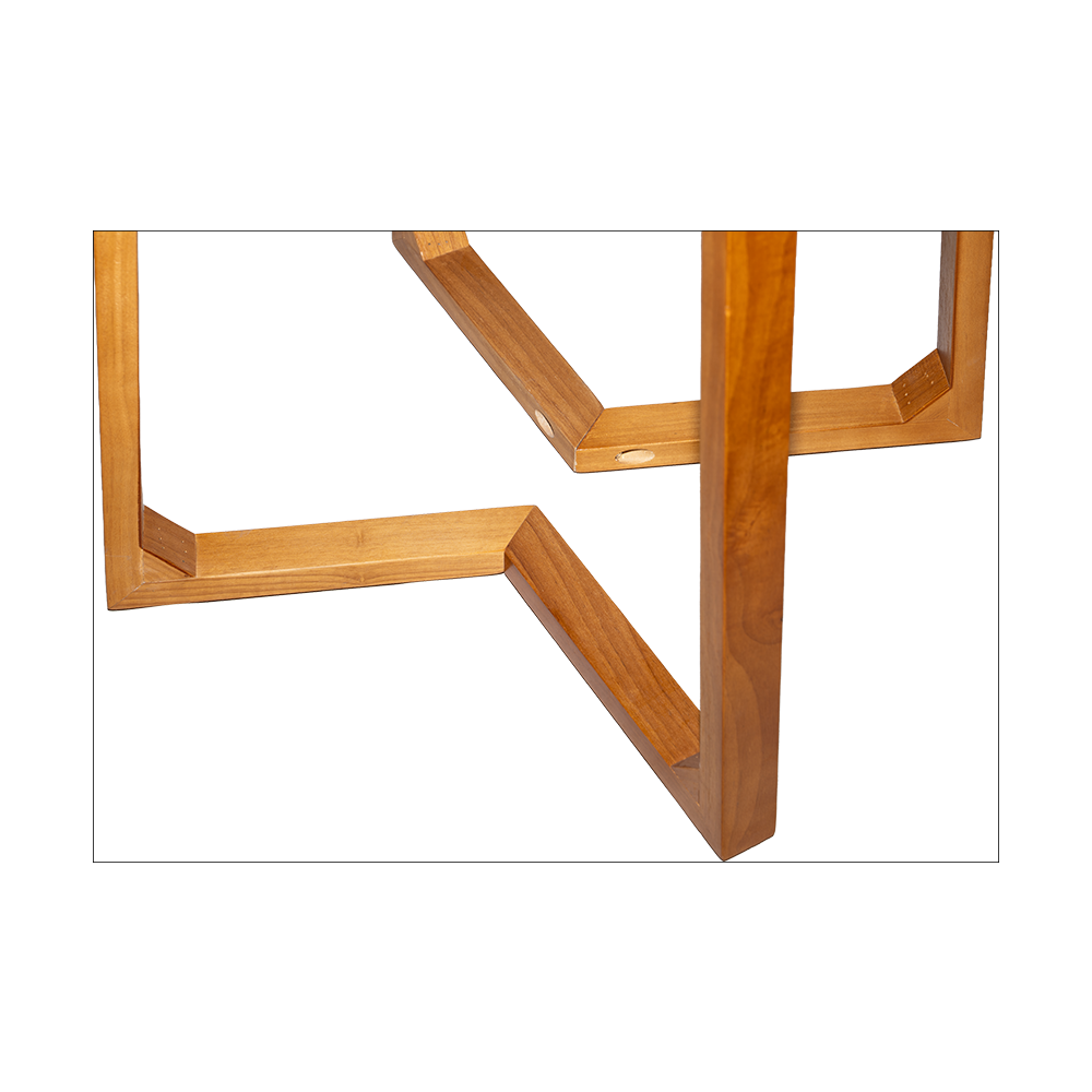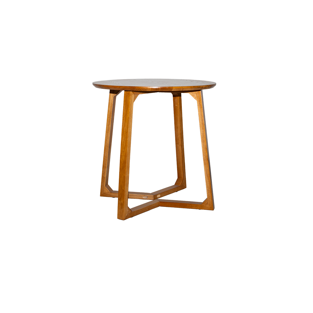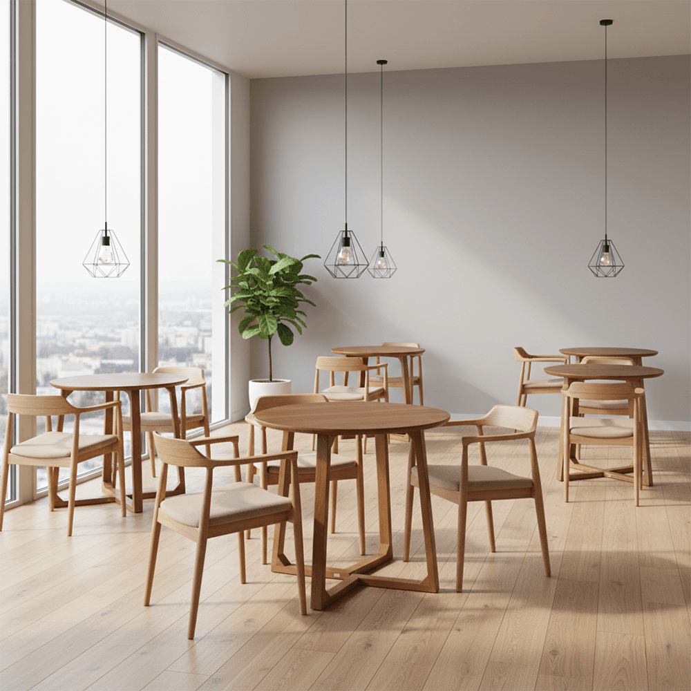 Designed for the modern bistro, the Sienna Table combines the structural honesty of Mid-Century design with the durability required for high-traffic hospitality environments. The standout feature is its interlocking, geometric tripod base, which provides exceptional legroom and stability without the bulk of a traditional pedestal. Finished in a warm, honey-toned stain, this table creates an inviting atmosphere for morning espressos or intimate evening cocktails.