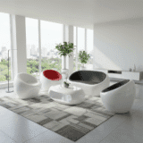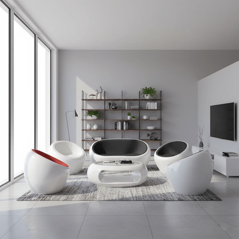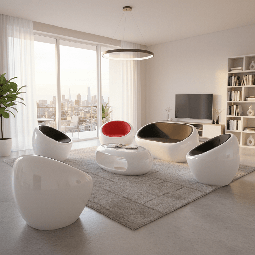 Space-Age Style, Earth-Bound Luxury. Elevate your home into a futuristic sanctuary where avant-garde art meets everyday relaxation.