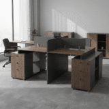 The Tavian Walnut Workstation is a masterclass in modern office ergonomics. Designed to maximize floor space without compromising on individual privacy, this double-sided workstation provides a premium, shared environment for two professionals. Featuring a stunning deep walnut finish contrasted by sleek charcoal accents, it brings an air of executive sophistication to open-plan offices, creative studios, or corporate headquarters.