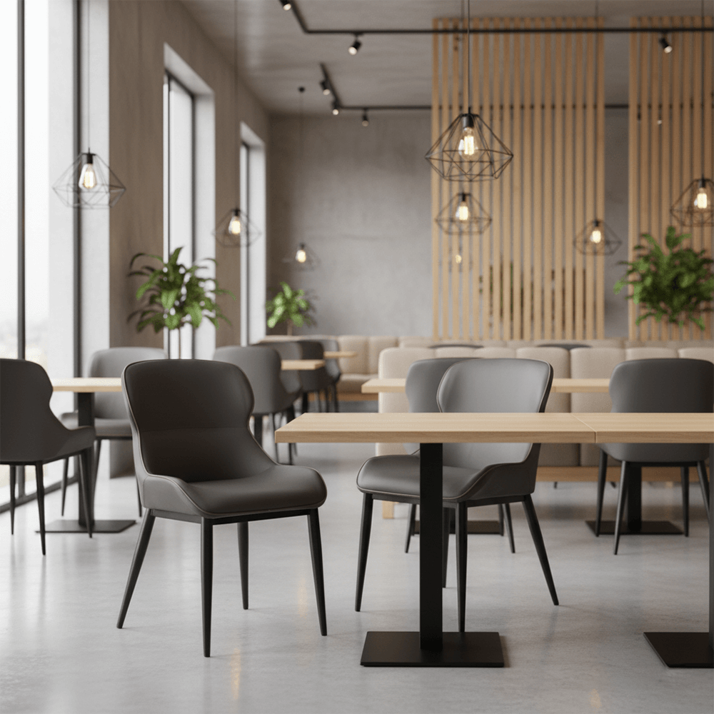 The Apollo is more than just a seat; it is a statement of refined taste. Drawing inspiration from the sleek lines of aerospace design and the minimalist roots of mid-century modernism, this chair is engineered for the high-traffic demands of premium restaurants, cafes, and executive dining rooms. Featuring a distinctive “wing-back” contoured shell and high-performance charcoal upholstery, The Apollo offers an ergonomic embrace that invites guests to linger longer.
