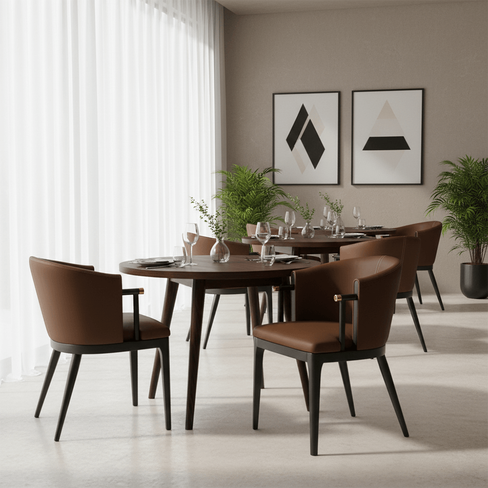 • Ergonomic Wrap-Around Back: The curved, semi-circular backrest provides continuous lumbar support and a sense of “enclosure” for a more private dining experience.