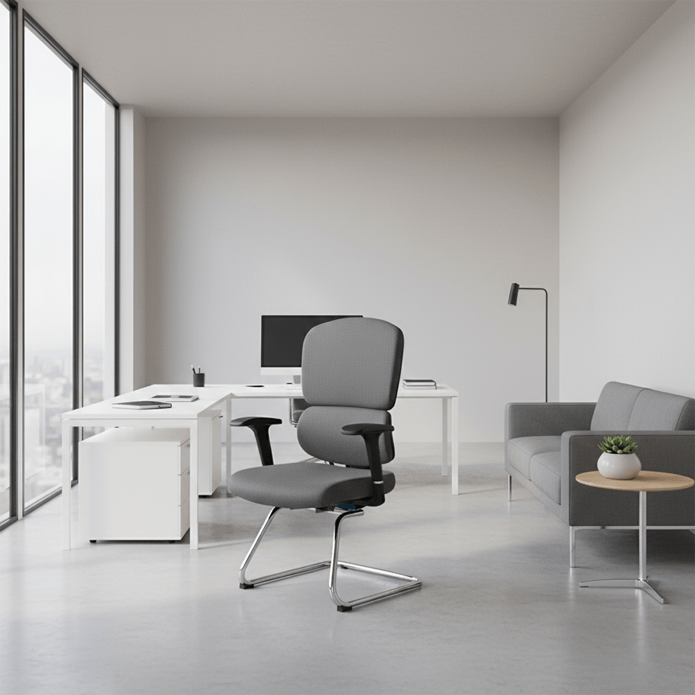 - High-Tensile Cantilever Base: Built on a heavy-duty, reinforced chrome sled base. This design offers a subtle, weight-responsive flex, reducing pressure on the lower back during long meetings.